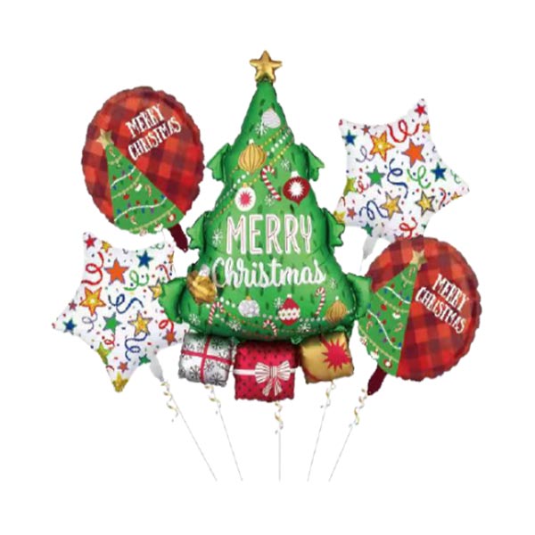 Zestaw 5 balonów foliowych „Choinka” – efektowna dekoracja na Boże Narodzenie, Mikołajki i spotkania wigilijne. Ułóż bukiet albo rozmieść pojedynczo. Na hel lub powietrze, wielorazowe – posłużą przez kolejne sezony