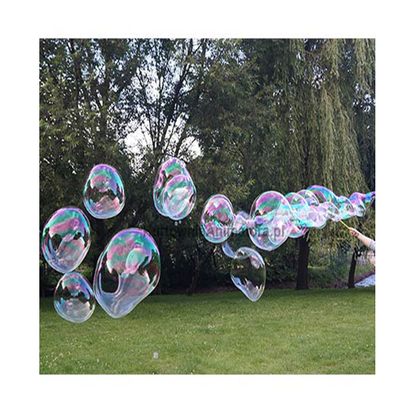 Zestaw: Płyn do wielkich baniek 1 l + kijki PODWÓJNE (50 cm). Daje gigantyczne bańki w wersji przyjaznej dzieciom. Idealny na prezent i rodzinne zabawy na zewnątrz.