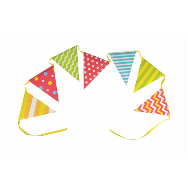 Kolorowa girlanda z papierowych flag o długości 150 cm. Szybki sposób na barwną metamorfozę wnętrza – idealna na urodziny, sylwestra, karnawał, klasowe imprezy i domowe party. Łatwy montaż dzięki zakończeniom do zawieszenia.