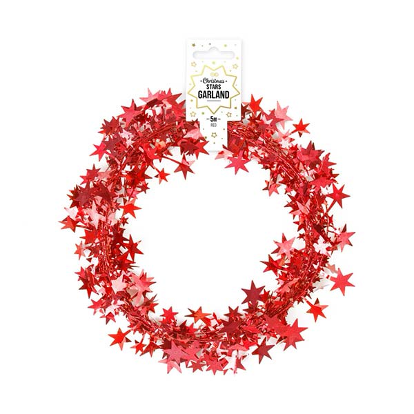 Girlanda Świąteczna – Czerwone Gwiazdki 5 m | Foliowa, błyszcząca dekoracja