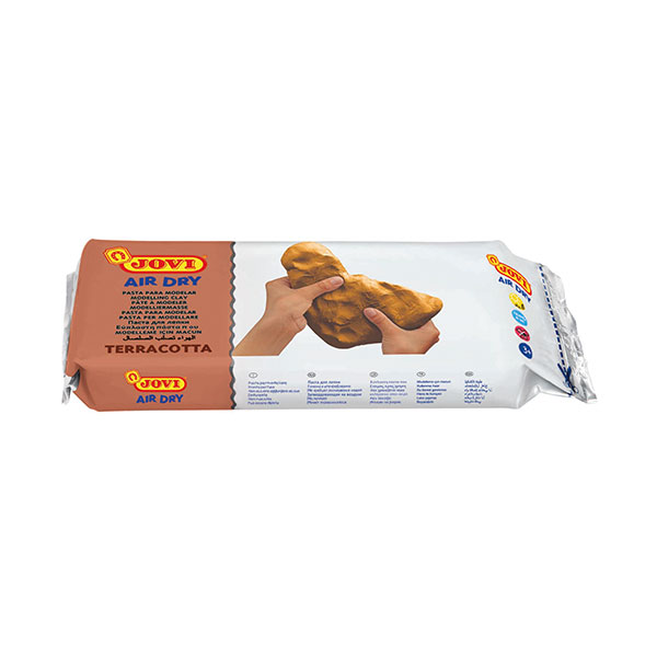 Glina modelarska JOVI w kolorze terracota (1 kg) – miękka, elastyczna i łatwa w modelowaniu. Nie klei się do rąk, wysycha w ciągu 24 godzin. Po wyschnięciu można ją malować i zabezpieczyć lakierem.