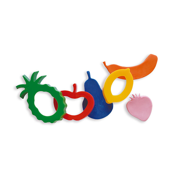 Zestaw sześciu solidnych foremek w kształcie różnych owoców. Foremki idealnie nadają się do zabawy z ciastoplastoliną, plasteliną, modeliną czy innymi masami plastycznymi.
