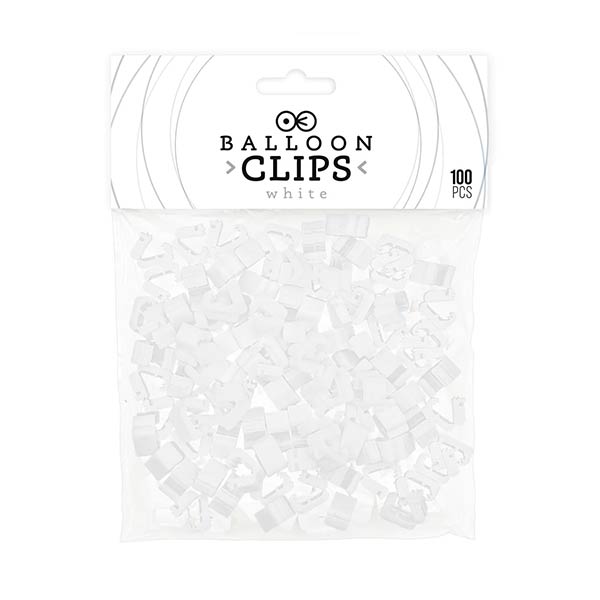 Białe klipsy do balonów – 100 szt. Koniec z wiązaniem supełków! Zepnij szyjkę balonu klipsem i gotowe. Idealne do szybkich dekoracji na urodziny, Mikołajki i świąteczne imprezy. Do balonów na powietrze i hel.