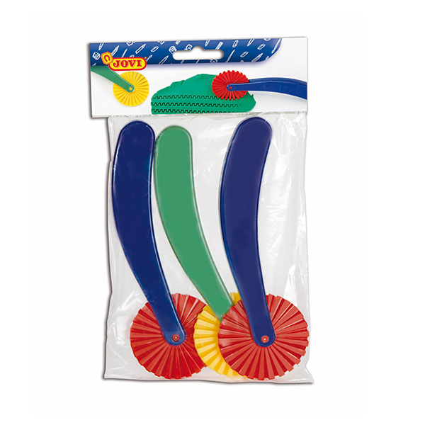Bezpieczne nożyki kreatywne JOVI to zestaw 3 narzędzi do cięcia, radełkowania i modelowania mas plastycznych. Idealne do pracy z plasteliną, ciastoliną i gliną – wspierają rozwój manualny i pobudzają kreatywność dzieci.