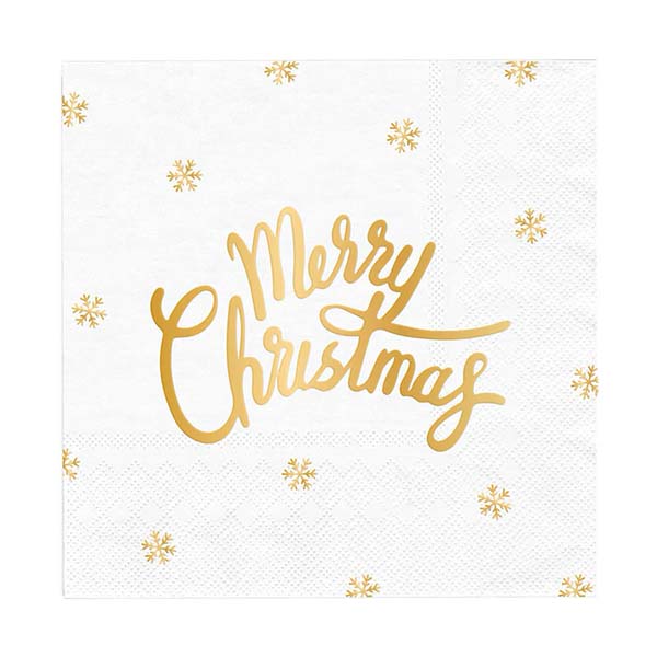 Serwetki papierowe Merry Christmas – złoty napis, 10 szt. | 33 × 33 cm