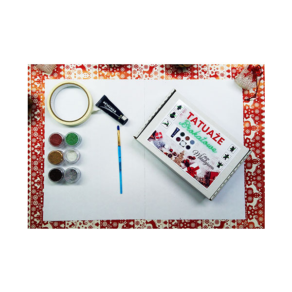 Tatuaże Brokatowe – Zestaw Mikołajkowy | Świąteczne wzory + klej + brokaty + pędzelek